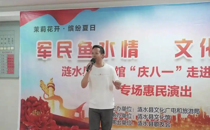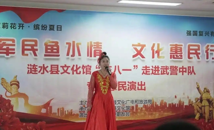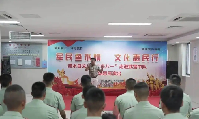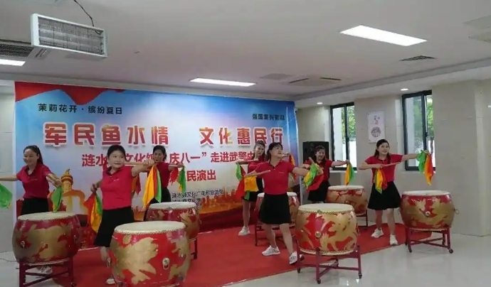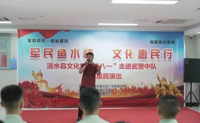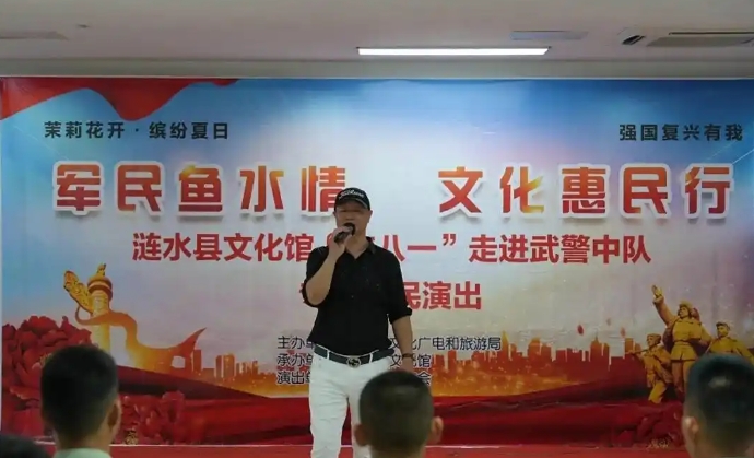 7月31日,涟水县文化馆走进武警中队,举办了一场别开生面的“庆八一”暨“军民鱼水情文化惠民行”专场惠民演出活动,为官兵们送上了一场精彩纷呈的文艺演出,现场气氛热烈,军民情谊深厚。