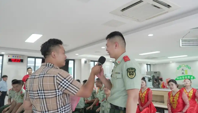 活动中还设置了欢乐互动环节,武警官兵们参与《击鼓传花》《正令反做》等游戏,现场欢声笑语不断,进一步拉近了军民之间的距离。武警中队战友合唱的《祖国不会忘记》,将演出推向高潮,深情的歌声表达了军人对祖国的无限忠诚与热爱,也让大家深刻感受到军人默默奉献的伟大精神。活动最后,全体演职人员和全体武警官兵一起合唱《咱当兵的人》,嘹亮的歌声中,让鱼水深情在这一刻愈发绵长。