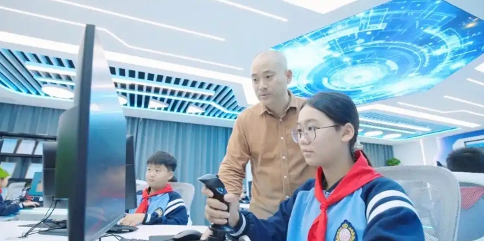 这份坚持,很快迎来了更有力的“助推”。2025年,在涟水县委、县政府和县教体局的支持下,100多万元专项投入落地校园:崭新的模拟飞行室、充满科技感的AI智能机器人、配套齐全的编程设备相继建成。第一次走进新教室时,四年级朱可馨忍不住伸手摸了摸光滑的操作台:“以前只能在电视里见的东西,现在就在我眼前!”老师们也抓紧“充电”,参加专业培训、跟城市学校交流,把新技巧带回课堂——AI课上,孩子们用代码让机器人跳起舞;模拟飞行室里,大家操控飞机掠过一个个障碍物,奔向终点。连曾经不理解的家长,看到孩子捧着省级奖状回家,也开始主动问:“现在还可不可以再报名参加社团?”“下次训练要不要带点水果?”