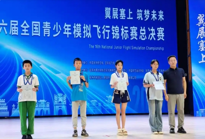 “请第十六届全国青少年模拟飞行锦标赛总决赛小学女子乙组第2名、一等奖获得者,来自江苏涟水高沟镇中心小学的陈一菲上台领奖!”2025年8月9日,在陕西榆林举办的国赛颁奖现场,聚光灯骤然打在这个扎着马尾、眼神亮闪闪的乡村女孩身上。当她双手接过烫金证书,指尖轻轻摩挲着“一等奖”字样时——两年前挤在教室门口,踮脚看老师“飞行”的那个午后,突然清晰地浮现在眼前。